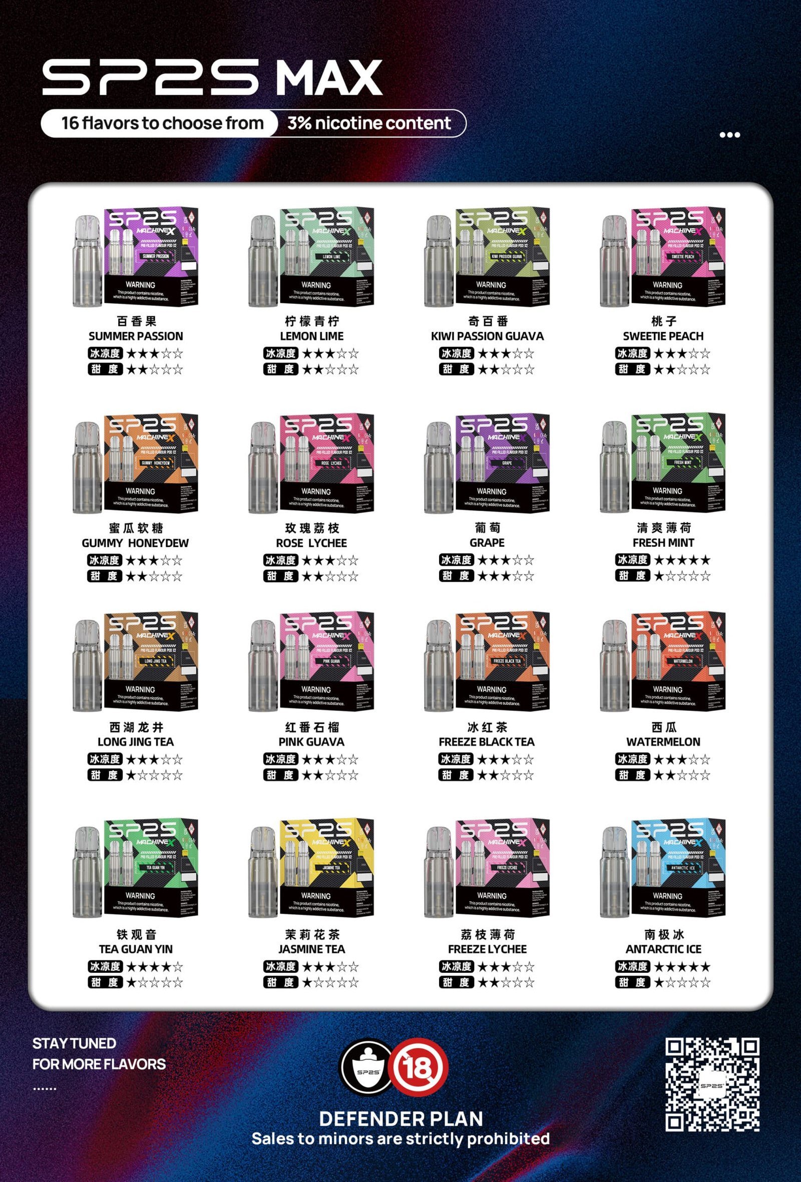 SP2 MAX 煙彈系列|4ml×2Pods|10 款經典風味|3% 尼古丁鹽|高滿足
